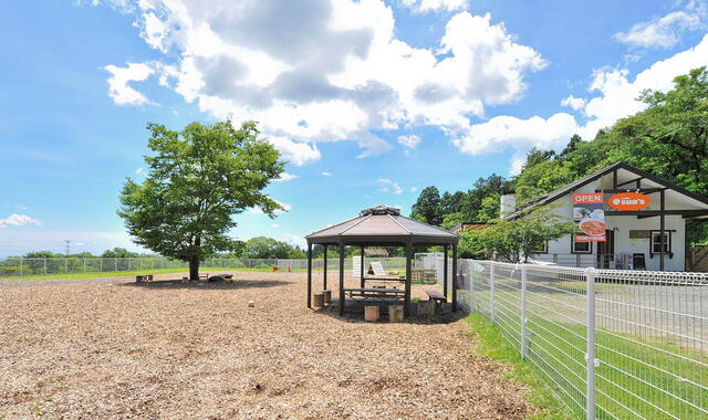 榛名山麓の緑に囲まれた約700坪のドッグランは開放的で風通しも良く、四季を通じて愛犬とお楽しみいただけます。