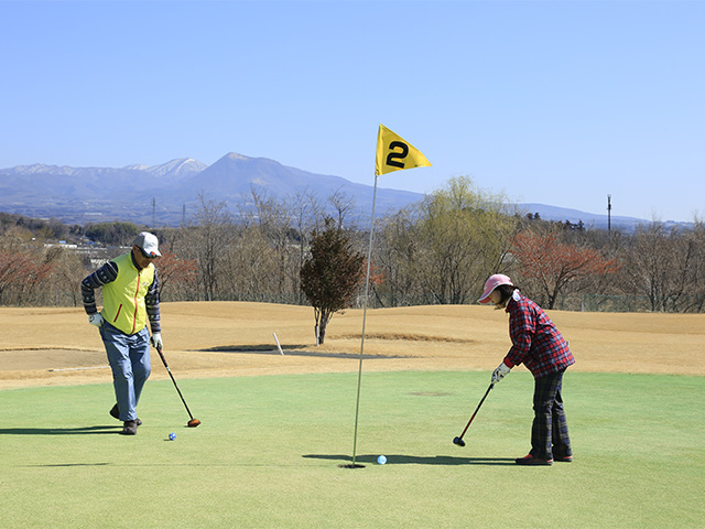 吉岡町緑地運動公園では、ケイマンゴルフやパークゴルフ、グラウンドゴルフの3種類のゴルフとテニスが楽しめます。