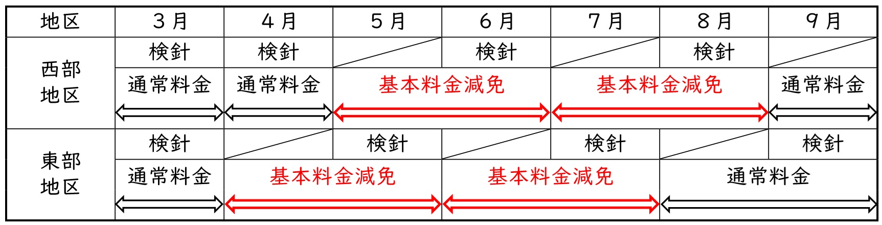 ※検針周期切替のため、西部地区の4月検針は1カ月分の水道料金の請求になります。